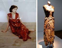 10.- Vanitas: Jana Sterbak (nacida en 1955) es una artista canadiense más conocida por sus obras hechas a partir de la carne. Dos esculturas, Vanitas: vestido de carne para un albino anoréxico (1987) y Presidente Apollinaire (1999), fueron las obras cuyo principal medio fue el uso de carne. Las obras de Sterbak tratan de las cuestiones de poder, la sexualidad y el control, y también explora la relación entre la humanidad y la tecnología que ha creado.